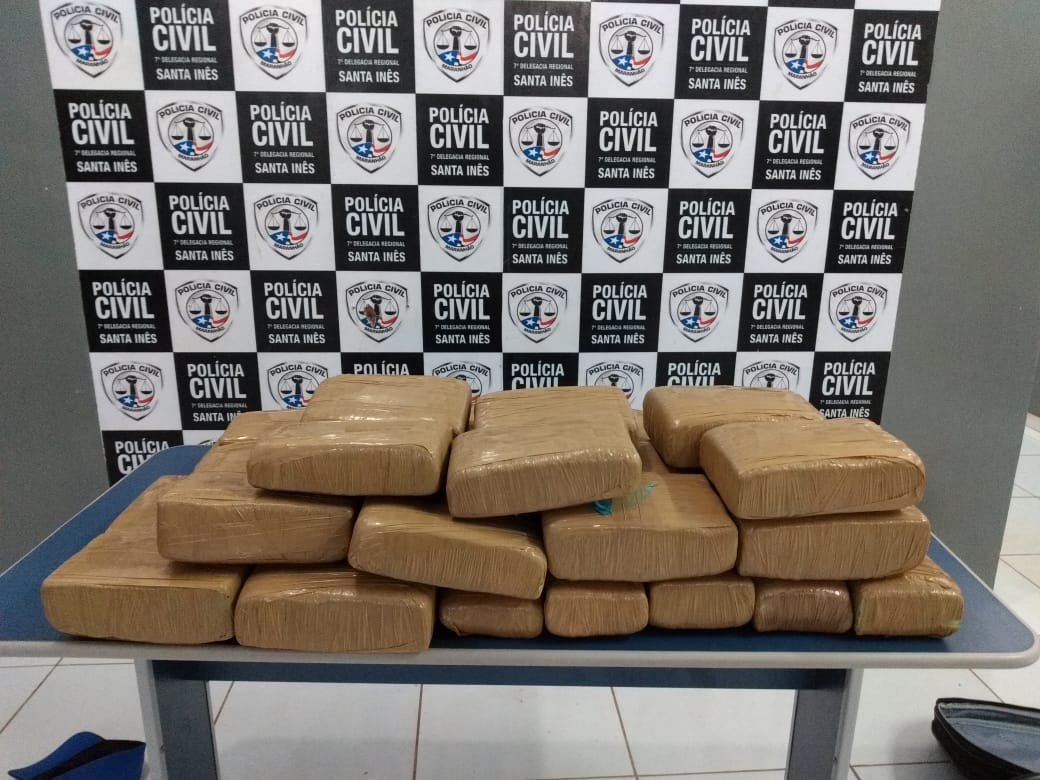 A Polícia Civil do Estado do Maranhão prendeu, na manhã de hoje(13), por volta das 09:30, na BR 316, próximo a entrada da cidade de Santa Inês/MA, um indivíduo natural de Boa Vista Do Gurupi-MA, transportando 35 invólucros grandes de uma droga comumente conhecida como maconha.