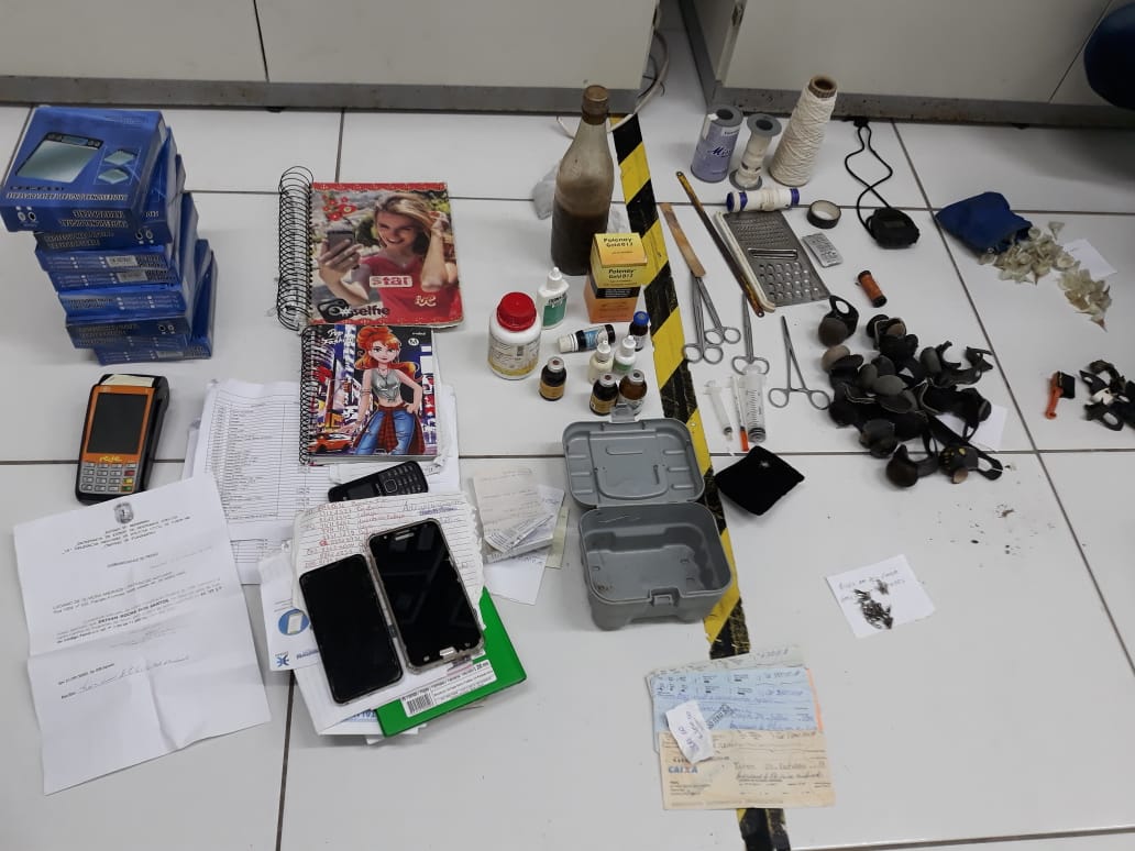A Polícia apreendeu ainda diversos materiais como tesouras cirúrgicas, máscaras para galos, dezenas de esporas de ferro e de plásticos, seringas e produtos veterinários que serão encaminhados ao Instituto de Criminalística (ICRIM); além de almofadas para esporas utilizadas em treinos, cronômetro, e vários outros materiais utilizados na rinha. Apreendeu ainda cadernos com anotações diversas relativas à atividade ilícita.