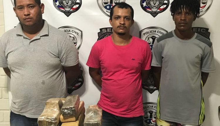 Enfatizando as ações contra o tráfico de entorpecentes na capital, a Polícia Civil do Maranhão prendeu nesta quinta-feira (23), por volta das 06hs, em Paço do Lumiar, a prisão de 04 acusados. Eles identificados por Tamilio Rodrigues Ferreira, 28 anos; Luciano Vitor Monteiro, 20 anos e Antônio Fernando Ribeiro Monteiro, conhecido pelo apelido de “Bofe”, foram presos pela SEIC, com 20kg de maconha prensada, uma arma de fogo e um veículo.