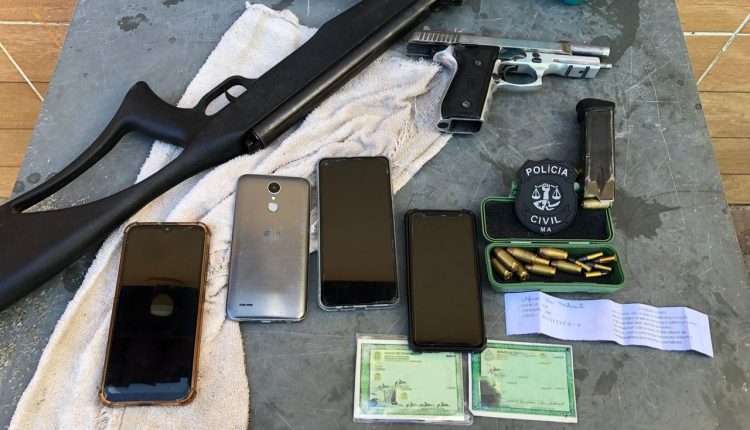 A Polícia Civil do Maranhão, através da Delegacia de Homicídios (DRH), Delegacia de Repressão ao Narcotráfico (Denarc), 1º e 2º Distritos, todos de Timon/MA, em operação realizada na data de festa segunda-feira (25/04/2022), deu cumprimento a 02 (dois) mandados de prisão preventiva além prender 03 (três) pessoas em flagrante e realizar a apreensão de entorpecentes e armas de fogo no bairro Vila do Bec, em Timon/MA.
