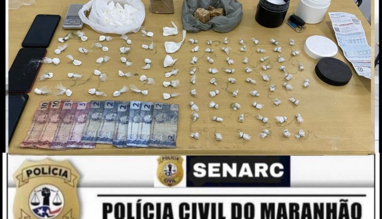 A Polícia Civil do Estado do Maranhão, por intermédio da Superintendência Estadual de Repressão ao Narcotráfico (SENARC), prendeu na manhã desta quarta-feira (23/03/2022) um acusado com a posse de substâncias entorpecentes. Com ele foi apreendido crack, maconha e cocaína.