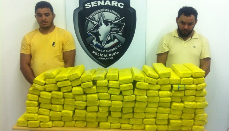 A Polícia Civil do Maranhão em ações de combate ao crime de entorpecentes realizou a nesta quinta-feira (13), na BR 135, de uma dupla envolvida com o tráfico de entorpecentes na região de Itapecuru Mirim. A prisão bem articulada foi desencadeada pela Superintendência Estadual de Repressão ao Narcotráfico (SENARC), onde os dois homens foram identificados como Allan Eric Galvão Galvão e Paulo Fernando Mendes Sampaio. Com eles foram apreendidos, cerca de 150 kg de maconha prensada.