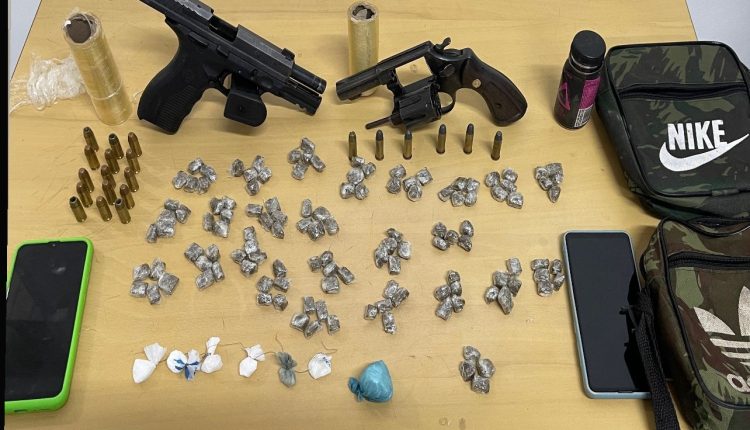 Após denúncias recebidas através do whatsApp denúncia, investigadores da Superintendência Estadual de Repressão ao Narcotráfico (SENARC) diligenciaram até uma residência localizada na Vila Embratel, onde flagraram dois homens na posse de grande quantidade de maconha e cocaína , além de duas armas de fogo (pistola e revólver) e munições para arma de fogo.
