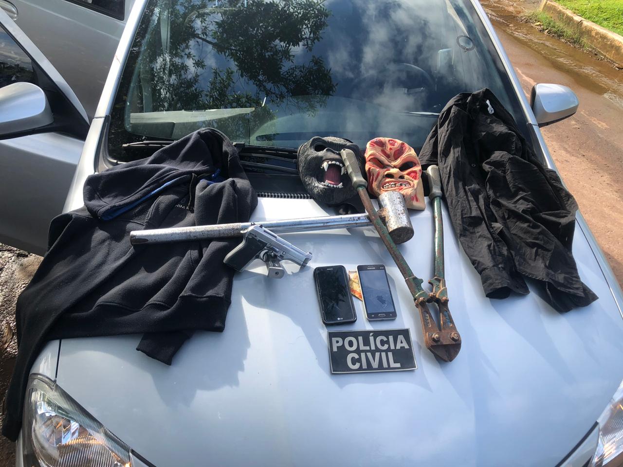 No momento da prisão foram apreendidos instrumentos para arrombamento, máscaras, uma pistola .380 cromada, celulares e o veículo Toyota Etios que estava com placas clonadas. O referido automóvel foi subtraído em um assalto à residência cometido na cidade de São Luís, cujos autores já foram identificados pela DRF.