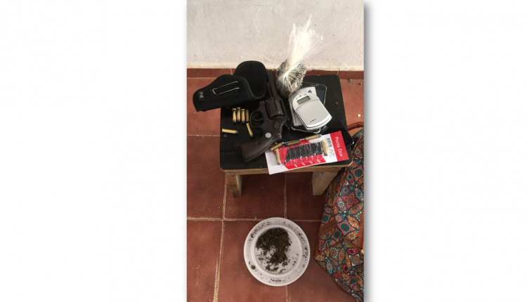 O delegado Breno Gaudino informou que durante a abordagem, um indivíduo conseguiu se evadir do local, não podendo ser capturado. Foi apreendida na residência uma porção de maconha, um revólver calibre 38 e 14 munições.