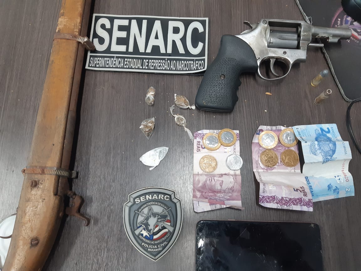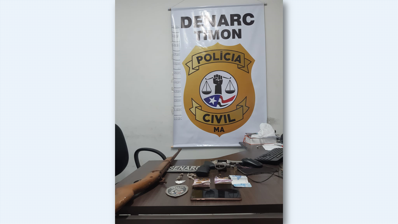 A Polícia Civil do Maranhão, através do Delegacia de Combate ao Narcotráfico (DENARC – Timon), unidade vinculada à SENARC, efetuou na manhã de hoje (15), por volta das 10h, a prisão de um individuo que estava na posse de duas armas de fogo, sendo um revólver calibre.38, municiado com duas munições intactas e uma espingarda de fabricação artesanal, tipo “bate bucha.