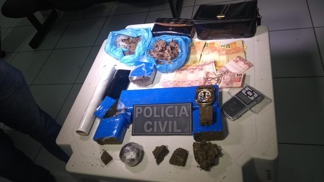 Na casa de suspeita foi encontrada certa quantia em dinheiro trocado, além de aproximadamente, 2,5kg de maconha prensada em barras, prontas para venda/consumo.