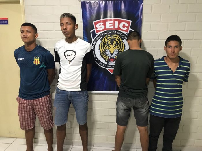 Em operação feita pela Polícia Civil do Maranhão, por meio da Superintendência Estadual de Investigações Criminais (SEIC), prendeu em flagrante Moabi Carlos de Sousa Bastos, de 20 anos, vulgo “Loirinho”, Caio César Gomes de Oliveira, de 18 anos, mais conhecido como “Fred”, Geanderson Ribeiro Costa, de 19 anos, vulgo “Chiquitinha” e apreendeu um adolescente infrator, pelas práticas dos crimes de roubo, porte ilegal de armas, corrupção de menores e pelo fato de integrarem organização criminosa armada.