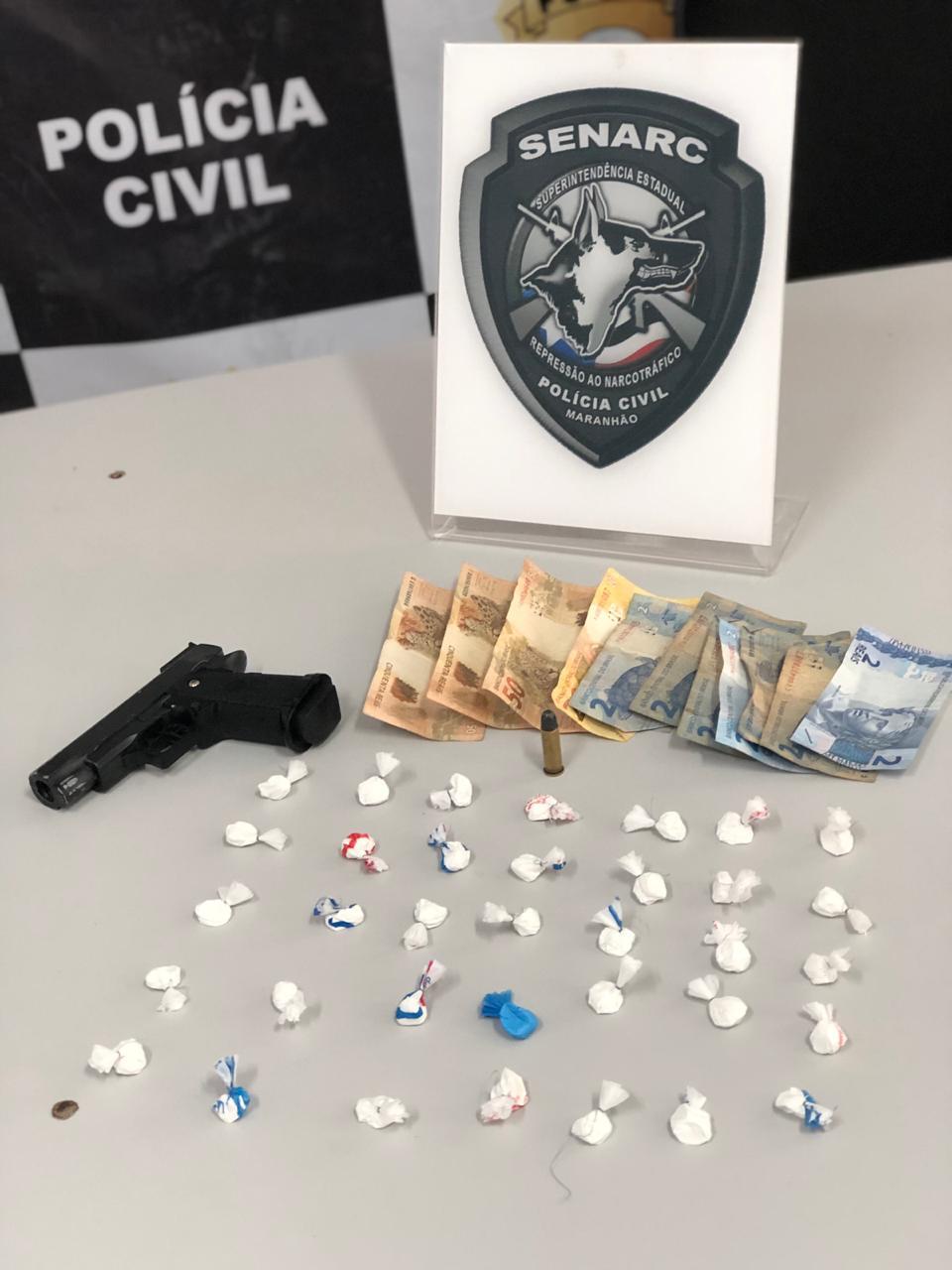 A Polícia Civil do Estado do Maranhão/MA prendeu hoje (21), por volta das 11h, no Bairro Vinhais, em São Luís, um indivíduo suspeito de praticar os crimes de Tráfico de Drogas e Posse Ilegal de Munição. A prisão foi realizada por meio da Superintendência Estadual de Combate ao Narcotráfico (Senarc).