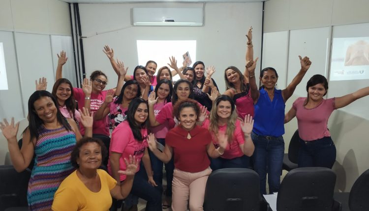 Cerca de 30 mulheres da sede da Polícia Civil assistiram a palestra ministrada pela enfermeira Roseana Costa Teixeira Cunha, especialista na área de Oncologia do Hospital Aldenora Bello, referência no Estado .