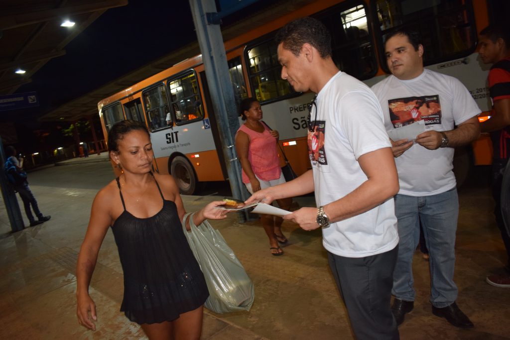 O Superintendente da SENARC, o Delegado Carlos Alessandro, o Delegado do Departamento de Narcóticos na capital, Valdenor Viegas, demais delegados e investigadores da SENARC realizaram a distribuição de panfletos educativos à transeuntes, condutores de veículos particulares e passageiros no interior de coletivos.