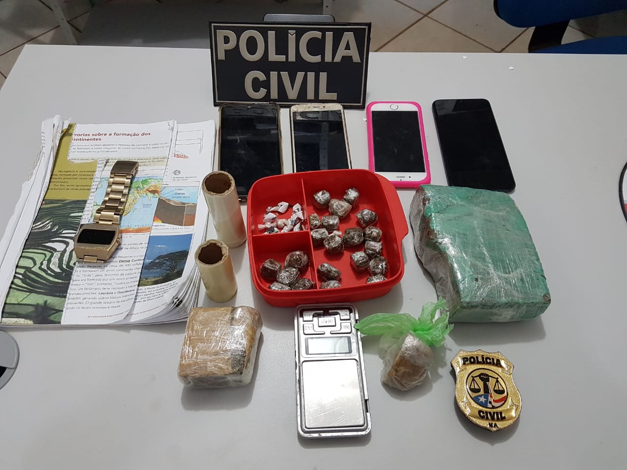 No curso da operação foi possível apreender grande quantidade das drogas do tipo CRACK e MACONHA, bem como uma balança de precisão usada no Crime de Tráfico.
