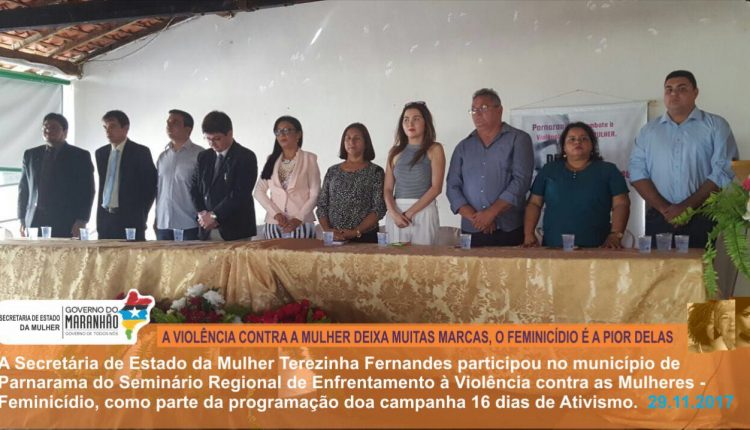 A Polícia Civil do Maranhão, por intermédio da 18ª Delegacia Regional da Polícia Civil e Coordenadoria Estadual das Delegacias das Mulheres, participou na quarta-feira (29), do Seminário Regional de Enfrentamento à Violência contra as Mulheres – Feminicídio, em Parnarama. Além dos representantes da Secretaria Estadual de Segurança Pública o evento contou com a participação da Secretaria Estadual da Mulher, Teresinha Fernandes, da Primeira Dama de Parnarama e Secretaria Municipal de Políticas das Mulheres, Girlene Soares.