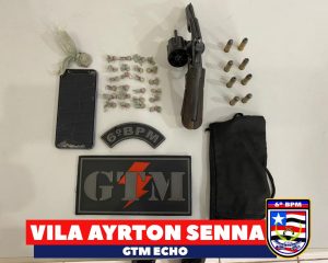 Na manhã desde sábado (06), policiais militares do GTM do 6º BPM realizavam rondas na Vila Ayrton Sena quando avistaram um indivíduo em atitude suspeita. Durante a abordagem foi encontrado com o mesmo um revólver calibre .38 com 8 munições e uma certa quantidade de substância entorpecente.