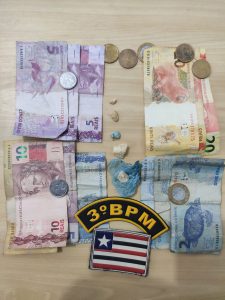 Na noite da última quinta (25) policiais militares do 3º BPM realizavam rondas no bairro bacuri quando abordaram 2 suspeitos em uma área bastante frequentada por usuários de drogas. Durante a abordagem um dos suspeitos tentou dispensar uma parte do material apreendido, mas o fato foi observado pelos policiais. O material eram 02 pedras grandes de crack, outras 03 pedras pequenas de crack foram encontradas com o outro suspeito. Além da droga foram encontrados com os suspeitos a quantia de R$124,00 e itens diversos.