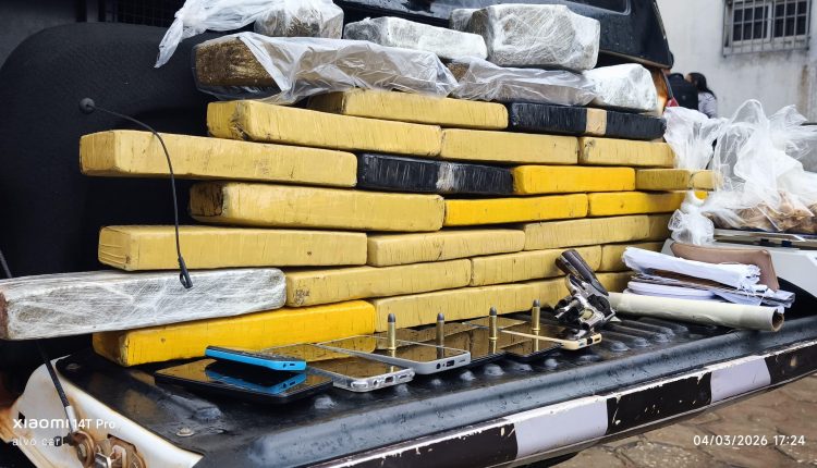 A ação, coordenada pelo 26º Batalhão de Polícia Militar, resultou na apreensão de aproximadamente 25,5 quilos de entorpecentes, entre cerca de 30 tabletes de maconha prensada, além de porções de crack e cocaína já fracionadas para comercialização.