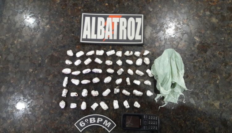 De acordo com o comande do 6ª batalhão, coronel Aritanã, durante rondas pelo Bairro da Janaína, uma guarnição avistou dois elementos em um local conhecido por ser um ponto intenso de comercialização de entorpecentes. Os mesmos foram abordados e com eles nada foi encontrado. Após a guarnição fazer uma varredura no local da abordagem foram localizados 53 papelotes de uma substancia semelhante a maconha.