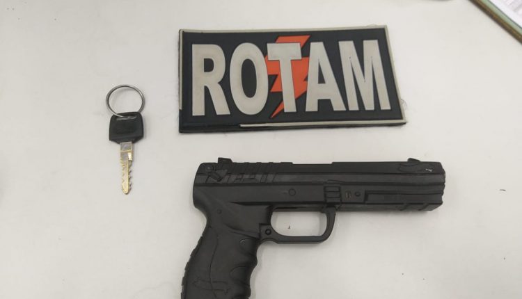 Uma guarnição da ROTAM realizava patrulhamento preventivo quando avistou a dupla em uma motocicleta em atitude suspeita, que ao perceber a presença policial, tentou se desfazer de um objeto que estava na cintura do carona. Imediatamente foi feita uma abordagem aos indivíduos.