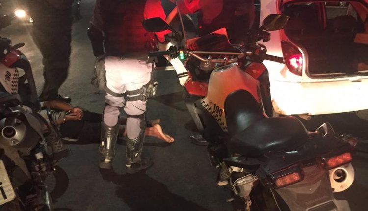 As informações acerca do crime repassado pelos policiais foram que o grupo teria abordado a vítima e dado sequência na ação delituosa. Mas na altura da rua Paulo Frontin, no bairro do Monte Castelo, os policiais da equipe do Batalhão Tiradentes visualizaram o veículo, o qual trafegava em alta velocidade, em sentido contrário da via. O veículo estava com 03 (três) indivíduos em seu interior, o que chamou atenção da guarnição, ao tempo que, iniciou-se o acompanhamento tático.