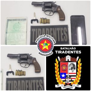 Os policiais da equipe do Batalhão Tiradentes encontraram ainda com os criminosos 01 arma de fogo (revólver cal. 38), 04 (quatro) munições intactas cal.38, 02 (dois), estojos do mesmo calibre deflagrados, 01 (celular) samsung e 01 (um) veículo celta (recuperado).