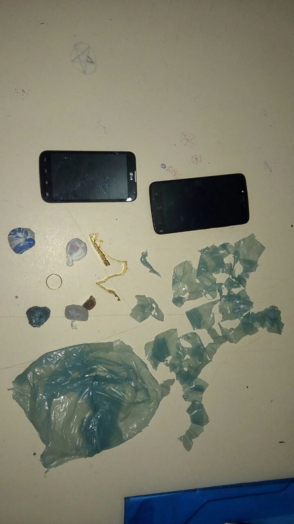 Após a revista um dos indivíduos relatou ter dispensado drogas ao avistar a viatura. Os policiais então retomaram no local do início da fuga, onde foram encontradas as drogas e todos os materiais apresentados. Os acusados foram levados até a Delegacia de Polícia Civil, onde fizeram sua apresentação sem lesões corporais, para as medidas cabíveis.