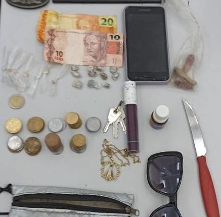 As informações dão conta, que com a acusada foram apreendidos 01 arma branca; 11 papelotes de substância semelhante a maconha; 11 papelotes substância semelhante a crack, dinheiro e demais pertences.