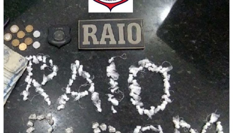 Durante rondas pela Rua da Felicidade, uma equipe do Raio Alfa avistou os dois indivíduos em atitude suspeita, sendo imediatamente feita uma abordagem e uma revista na dupla. Após uma minuciosa verificação nas imediações do local foram encontrados 93 papelotes de substância semelhantes ao crack, 36 papelotes de uma substância semelhante à maconha, cerca de 446 reais e um aparelho de celular.