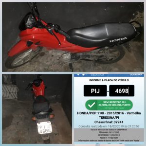 Policiais Militares de serviço na cidade de Buriti foram informados por várias vítimas que dois indivíduos haviam cometido assaltos em uma motocicleta Honda Pop vermelha, utilizando arma de fogo e se evadido da cidade logo em seguida.