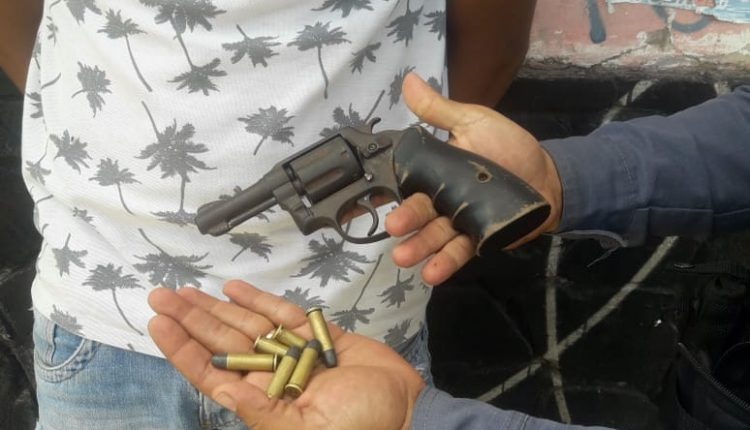 Foram apreendidos um revólver calibre 38, de marca e numeração ilegíveis, e com 6 munições intactas, sem autorização e em desacordo com determinação legal ou regulamentar. Diante dos fatos foi dado voz de prisão e encaminhado ao 8°DP, sem lesões corporais para serem tomadas medidas cabíveis.