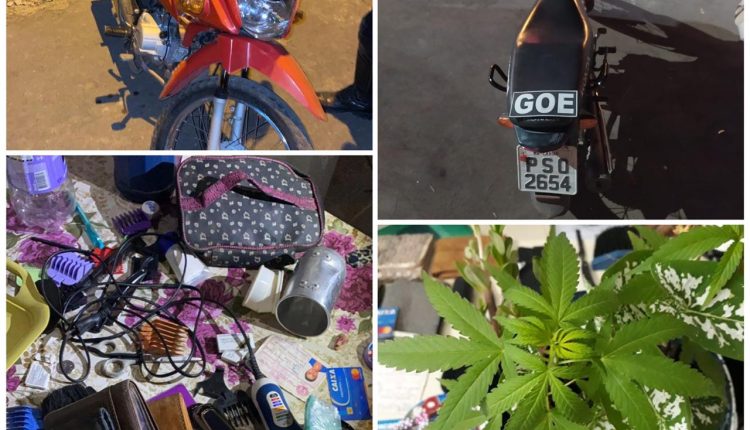 De imediato, os policiais iniciaram diligências e localizaram o veículo na Rua Alto do Sossego, no bairro Tamarineiro. Os criminosos empreenderam fuga e abandonaram o veículo e outros objetos roubados, 01 jarro contendo uma muda de maconha, 02 máquinas de cortar cabelo, 01 navalha, 17 pentes e 01 bolsa contendo maquiagem.