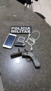 Na noite do último sábado (11), a guarnição da Polícia Militar durante policiamento ostensivo na Travessa do Estádio na cidade de Brejo, avistaram Marcos AntônioBarbosa Araújo, 25 anos, em atitudes suspeitas e ao realizarem busca pessoal,foi encontrado com ele 01 (uma) arma de fogo de fabricação caseira, calibre 38, com 02 (duas) munições intactas.
