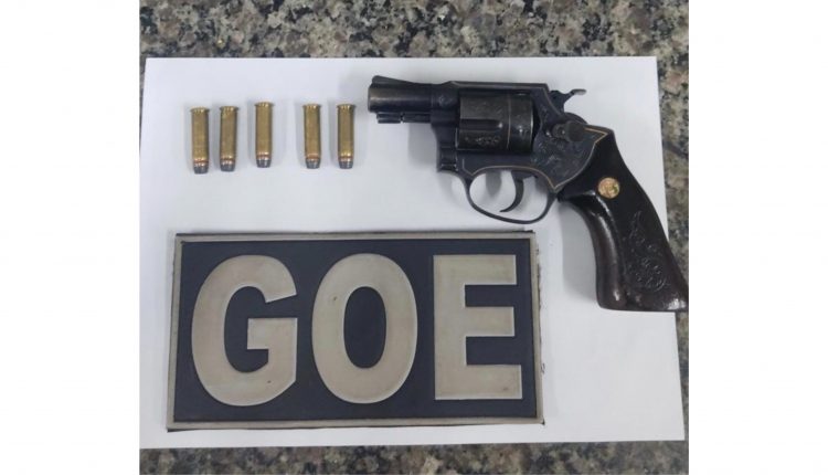 Os policiais realizavam rondas pela região, quando avistara um homem transitando em uma motocicleta em atitude suspeita. De pronto, os agentes deram voz de parada ao suspeito e durante busca pessoa, os policiais apreenderam um revólver calibre .38 e cinco munições de calibre .38 intactas em uma caixa que estava na garupa da moto.