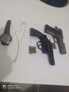 Com os criminosos, a polícia apreendeu uma motocicleta que era usada nas empreitadas criminosas, uma pistola Imbel 380, com 4 munições, sendo duas intactas e duas deflagradas, um revólver calibre .38, com 4 munições intactas.
