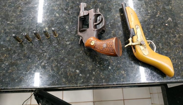 De imediato, a guarnição realizou abordagens nos presentes e apreendeu uma arma de fogo do tipo “Garrucha” com um homem e um revólver Taurus calibre .38 em posse de outro, além de cinco munições intactas.