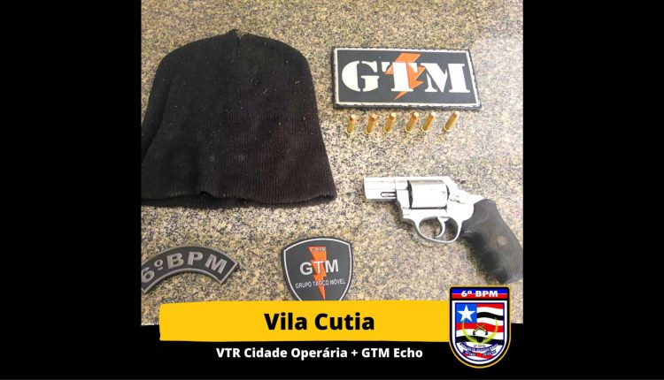 Policiais do 6º Batalhão de Polícia Militar prenderam, na tarde da última quinta-feira (24), um homem que estava em posse de uma arma de fogo na Vila Cutia.