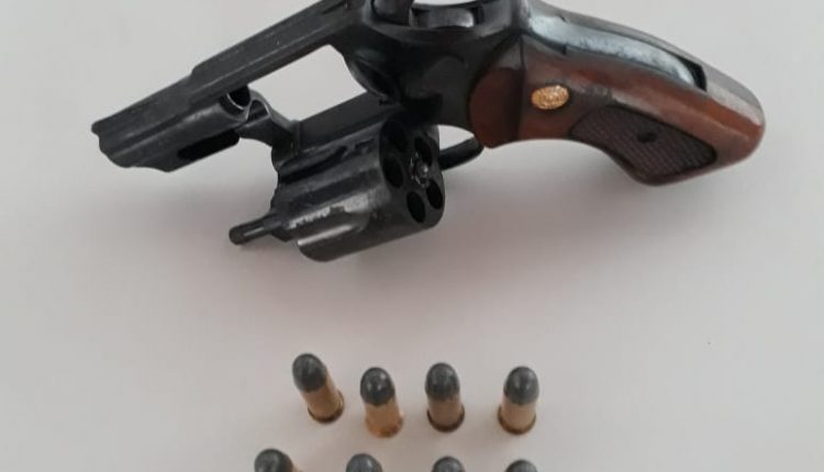 Chegando ao local, os policiais localizaram na residência do suspeito uma arma de fogo revólver Cal.38 com 10 munições intactas.