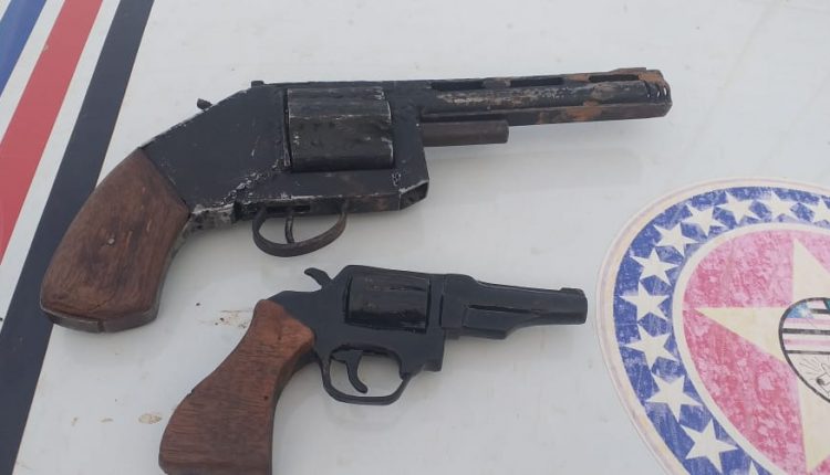 De imediato procedeu-se a abordagem do veículo mencionado no qual foram encontrados os indivíduos acima citados. Eles portavam uma arma de fogo, sendo um simulacro de arma de fogo e no banco traseiro do veículo, mantinham duas vítimas como reféns. Diante dos fatos todos os envolvidos receberam voz de prisão e foram conduzidos sem lesões corporais para Delegacia do Plantão da Cidade Operária.