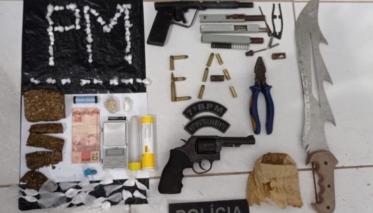 Policiais Militares do 7º BPM prendem homem com armas de fogo e entorpecentes em residência usada como esconderijo por organização criminosa