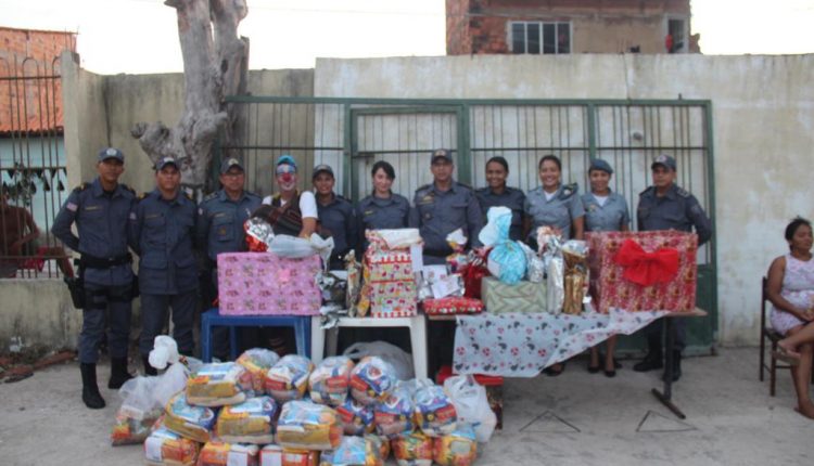 Policiais militares do Batalhão de Polícia Militar de Turismo (BPTur) realizaram, na tarde desta sexta (20), a entrega de presentes e cestas básicas para crianças carentes, que fazem parte do projeto “Arte de Ensinar”, no bairro da Ilhinha, em São Luís.