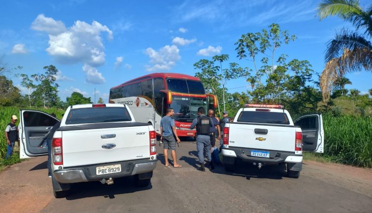 Após olhar as viaturas, o motorista do ônibus sinalizou os policiais e atravessou o veículo na BR-222, próximo ao município de Santa Luíza do Tide.
