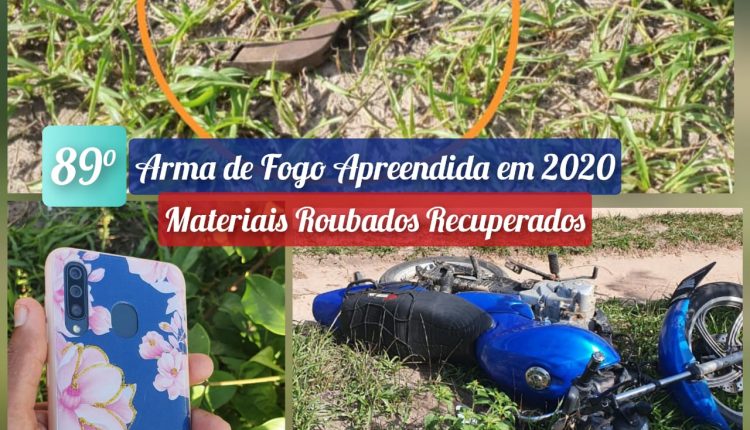 Policiais Militares do 13º Batalhão de Polícia Militar conseguiram recuperar uma motocicleta que havia sido roubada e apreenderam uma arma de fogo de fabricação caseira cal.38 na tarde da última terça-feira (29) próximo a praia do Caurá, Panaquatira.