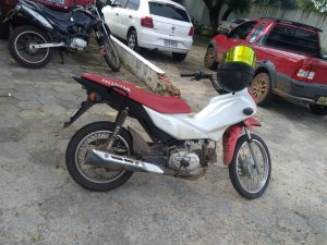 Na noite da última terça (12) um policial militar policial da 1ª USC sai de uma Drogaria localizada na Avenida Lourenço da Silva, e ao passar por uma rua próxima, avistou uma pessoa parada em sua moto, e a aproximação de dois indivíduos e anunciaram um assalto, um dos meliantes obrigou a vítima entregar a sua moto, e sua carteira fazendo uso de uma arma.