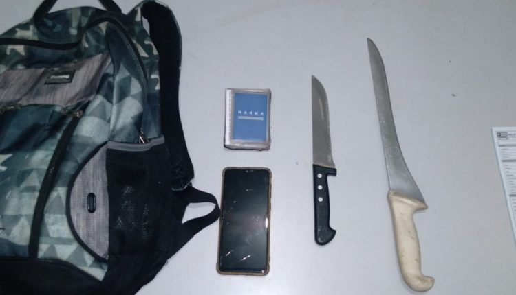Nesse momento eles chegaram a sacar armas brancas contra o policial, que sacou sua arma de fogo e conseguiu contê-los, dando voz de prisão aos acusados.