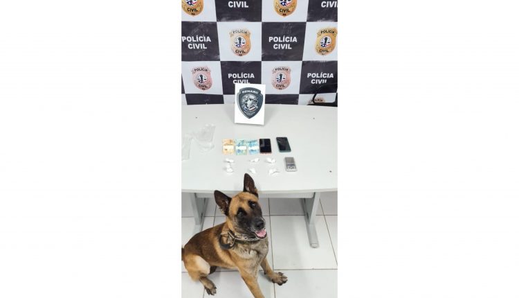 Na ocasião, os polícias procederam com a abordagem e dentro da residência, após vistorias com o apoio do cão varejador, K9 Viny. Foi encontrado substância entorpecente tipo cocaína, material plástico usado para embalar a droga, uma balança de precisão e uma quantia em dinheiro trocado.