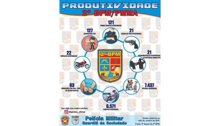 O Major QOPM Daniel Kraieski Pires Lages, Comandante do 2º BPM, divulga a produtividade operacional do 2º BPM referente ao mês de janeiro de 2021.