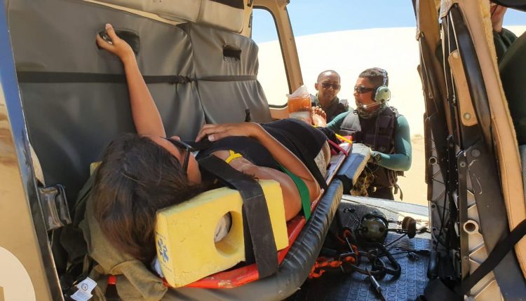 A equipe do CTA que desenvolve a Operação Férias “Rota das emoções “ juntamente com o Batalhão de Turismo da PMMA, na região do parque nacional dos lençóis maranhenses, foi acionada novamente, neste domingo 14/07/19, para prestar atendimento e resgate a uma turista de nome Luciene Silva Ribeiro, natural de São José de Ribamar, que havia se acidentado ao realizar uma descida numa tirolesa instalada na região de vassouras, dentro do parque dos lençóis. Chegando ao local, os operadores realizaram o pronto atendimento com a imobilização do membro fraturado e em seguida realizaram a sua evacuação via helicóptero, para cidade de barreirinhas, onde havia uma equipe da PMMA e uma ambulância do CBMMA, que a conduziu para o hospital local afim de que fossem tomadas as devidas atenções médicas.