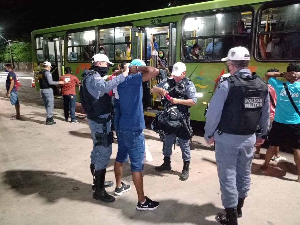 Nas Avenida e dentro dos bairros os ônibus receberam ordem para parar e foram vistoriados e seus passageiros revistados