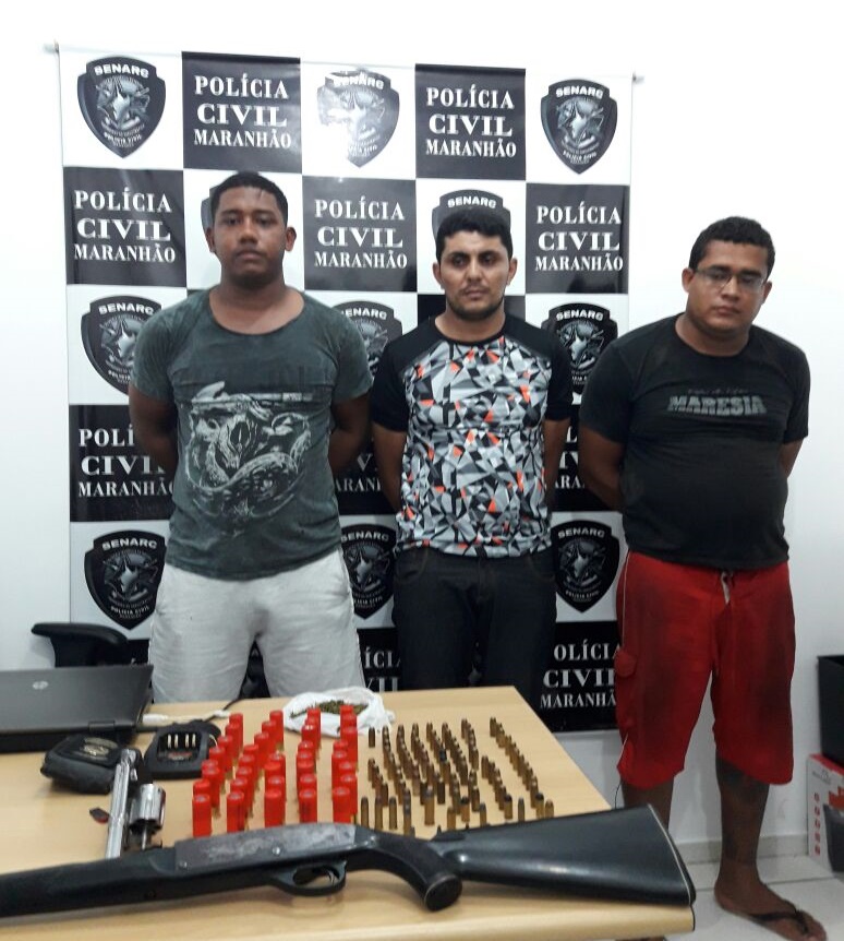 Dando continuidade às ações de repressão ao narcotráfico, a Polícia Civil, através da Senarc, unidade Timon, realizou na tarde de hoje da última segunda-feira (14), apreensão de drogas (maconha), armas de fogo e munições de diversos calibres além da prisão dos indivíduos Francisco Teles dos Santos Caldas (31), o “TIM”; Vilmar Santos de Oliveira (30), o “Charles”, e Darlan de Brito Sousa Sousa (23), pelos crimes de tráfico de drogas e porte ilegal de arma de fogo.