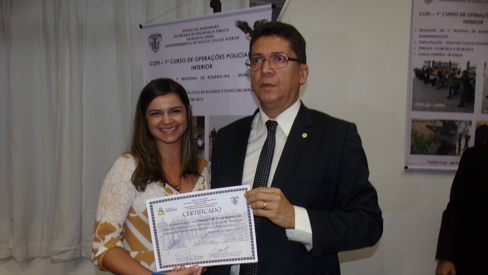Natália Porpino, Delegada Especial da Mulher/Rosário-MA Secretário Jefferson Portela/Entrega certificado do curso