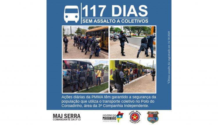 O resultado do trabalho preventivo empregado pela PMMA reflete nos dados estatísticos. O último assalto a coletivo registrado na área da 3ª CI foi em 16 de outubro de 2020, acumulando 117 dias sem ocorrência, até esta quarta-feira, dia 10.